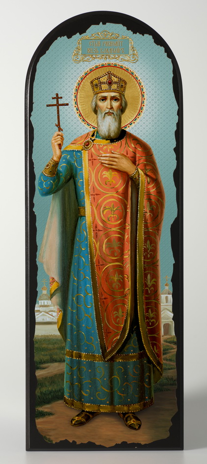 Икона на МДФ 18х50 арочная, объёмная печать, лак Владимир 2