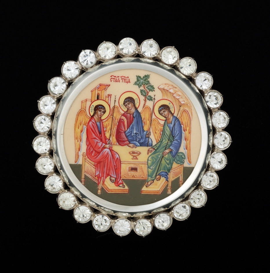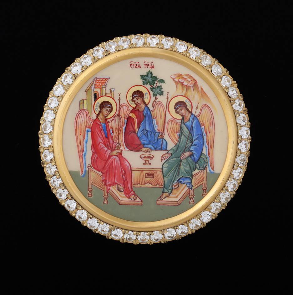 Икона на митру "Троица", живопись, серебро