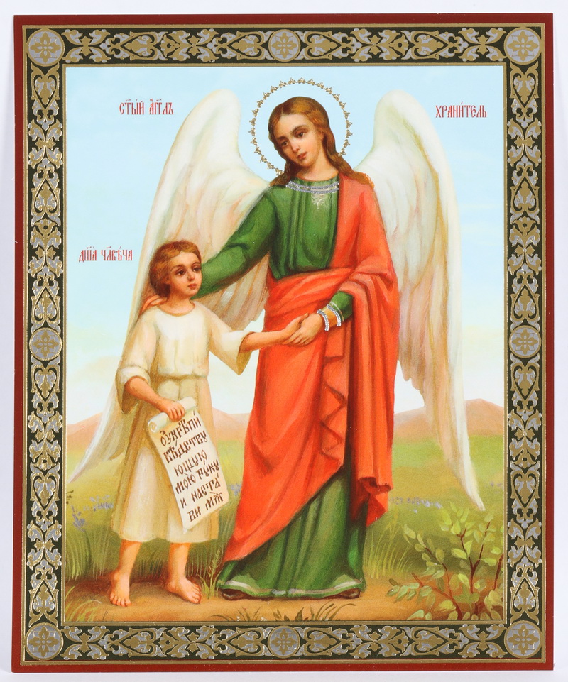 Икона на оргалите №1 11х13 двойное тиснение Ангел-Хранитель с душой