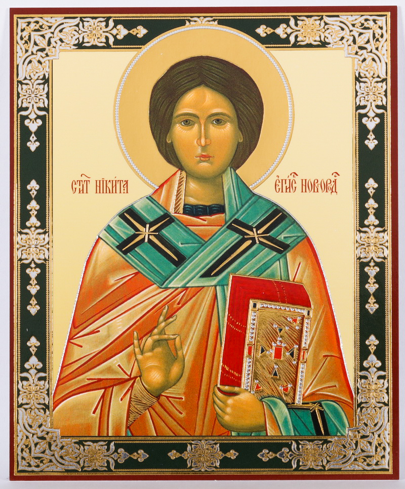 Икона на оргалите №1 11х13 двойное тиснение Никита Новгородский