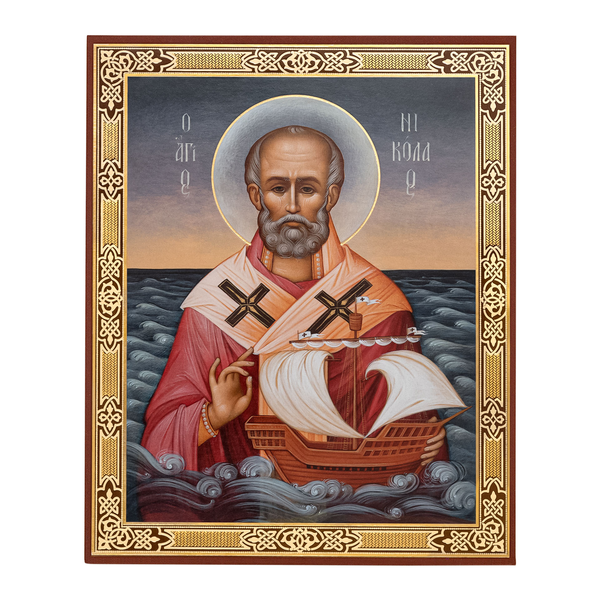 Икона на оргалите №1 11х13 двойное тиснение Николай Чудотворец 19