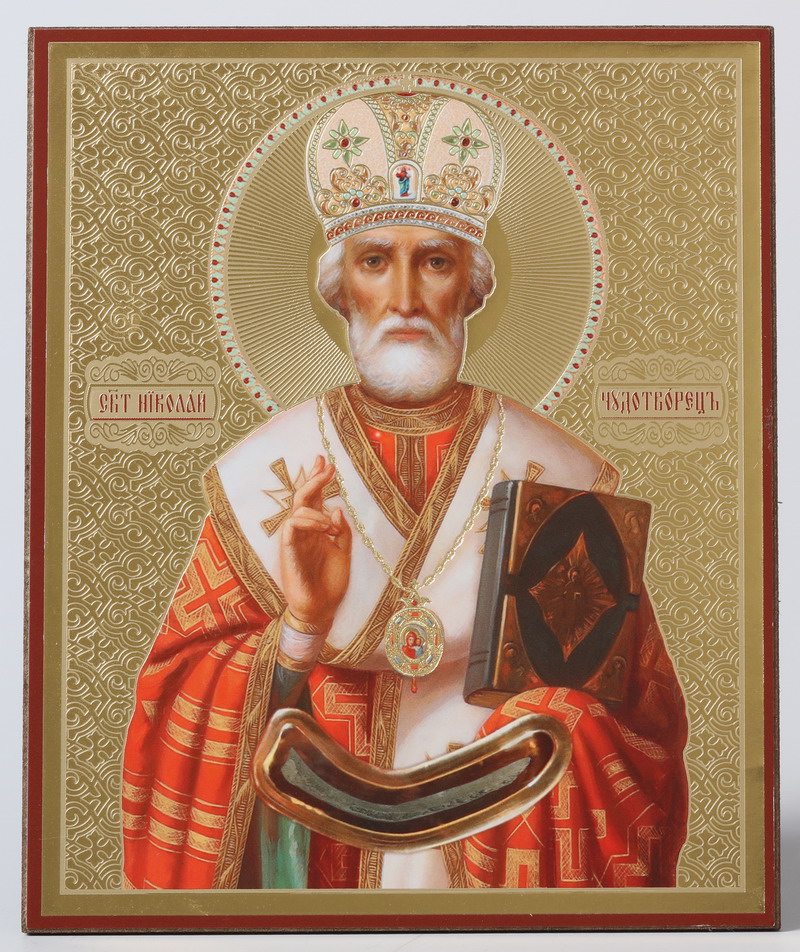 Икона на оргалите №1 11х13 двойное тиснение Николай Чудотворец (ковчег)
