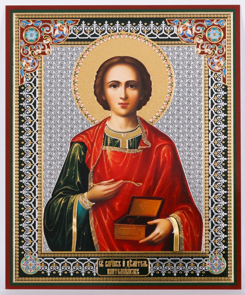 Икона на оргалите №1 11х13 двойное тиснение Пантелеимон
