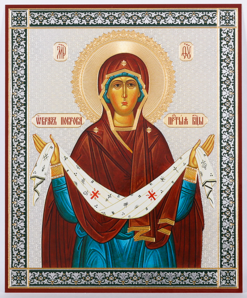 Икона на оргалите №1 11х13 двойное тиснение Покров (поясной) 2