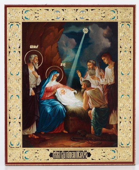 Икона на оргалите №1 11х13 двойное тиснение Рождество Христово 64