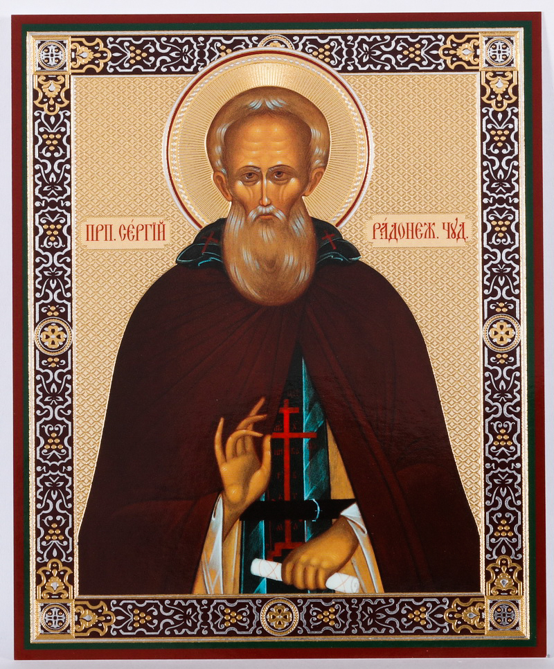 Икона на оргалите №1 11х13 двойное тиснение Сергий Радонежский