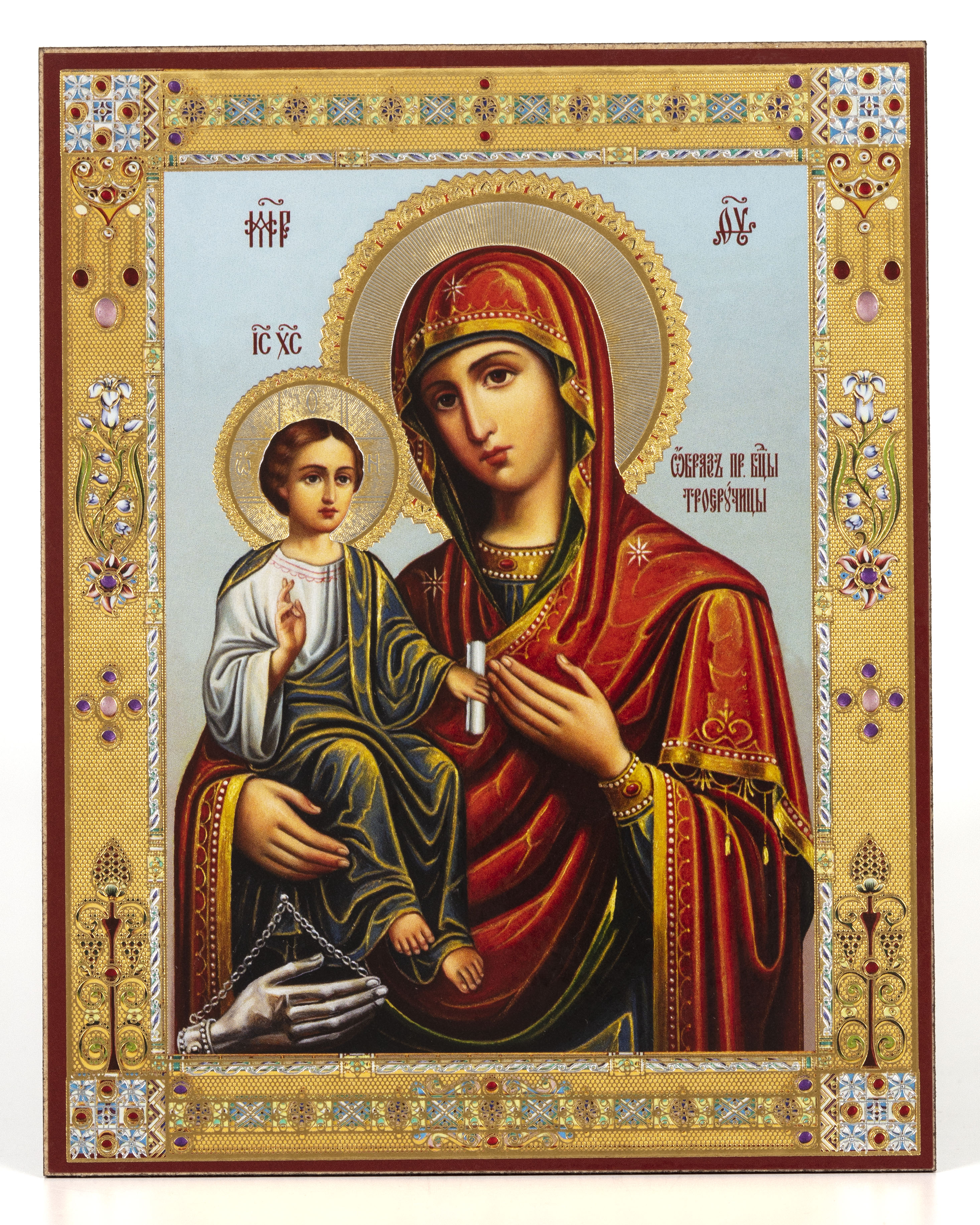 Икона на оргалите №1 11х13 двойное тиснение Троеручица 4