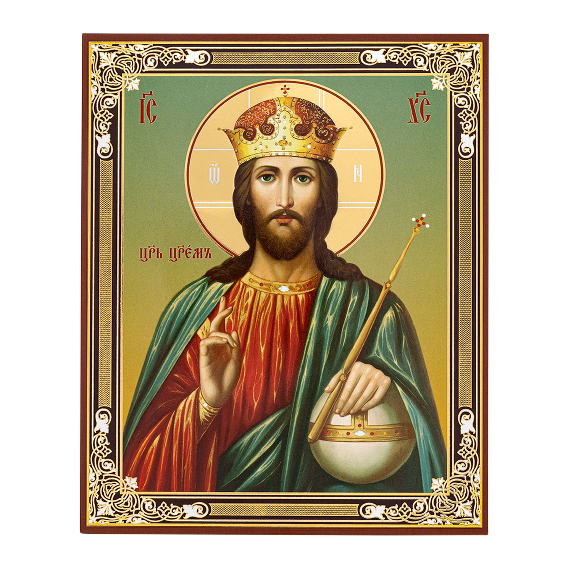 Икона на оргалите №1 11х13 двойное тиснение Царь Царем (Царь Царей)