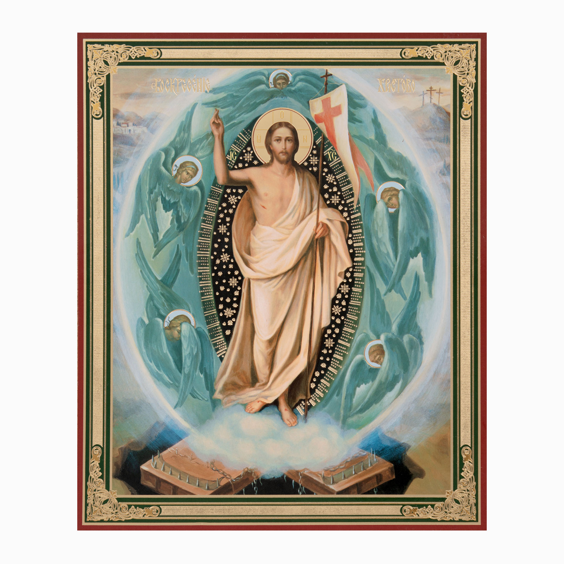 Икона на оргалите №1 11х13 двойное тиснение Воскресение Христово 69
