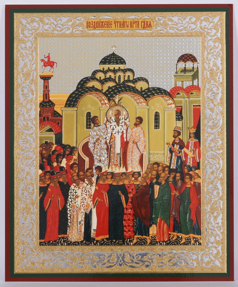 Икона на оргалите №1 11х13 двойное тиснение Воздвижение Креста Господня