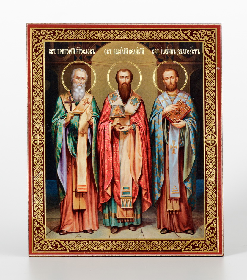 Икона на оргалите №1 11х13 тиснение Григорий Богослов, Василий Великий, Иоанн Златоуст