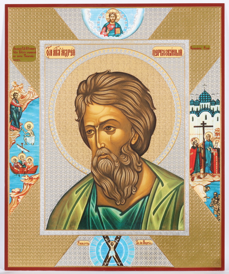 Икона на оргалите №1 18х24 двойное тиснение Андрей Первозванный