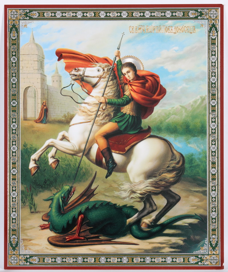 Икона на оргалите №1 18х24 двойное тиснение Чудо Георгия о змие