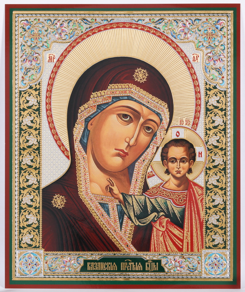 Икона на оргалите №1 18х24 двойное тиснение Казанская БМ 10