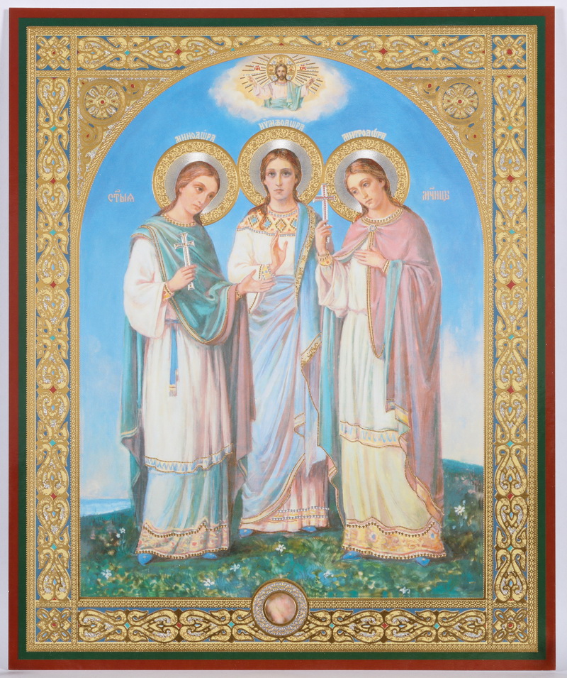 Икона на оргалите №1 18х24 двойное тиснение Минодора, Митродора, Нимфодора