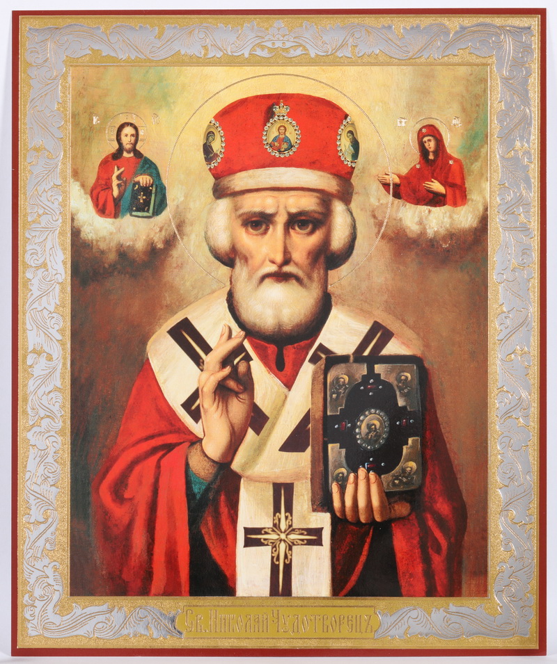 Икона на оргалите №1 18х24 двойное тиснение Николай Чудотворец 16