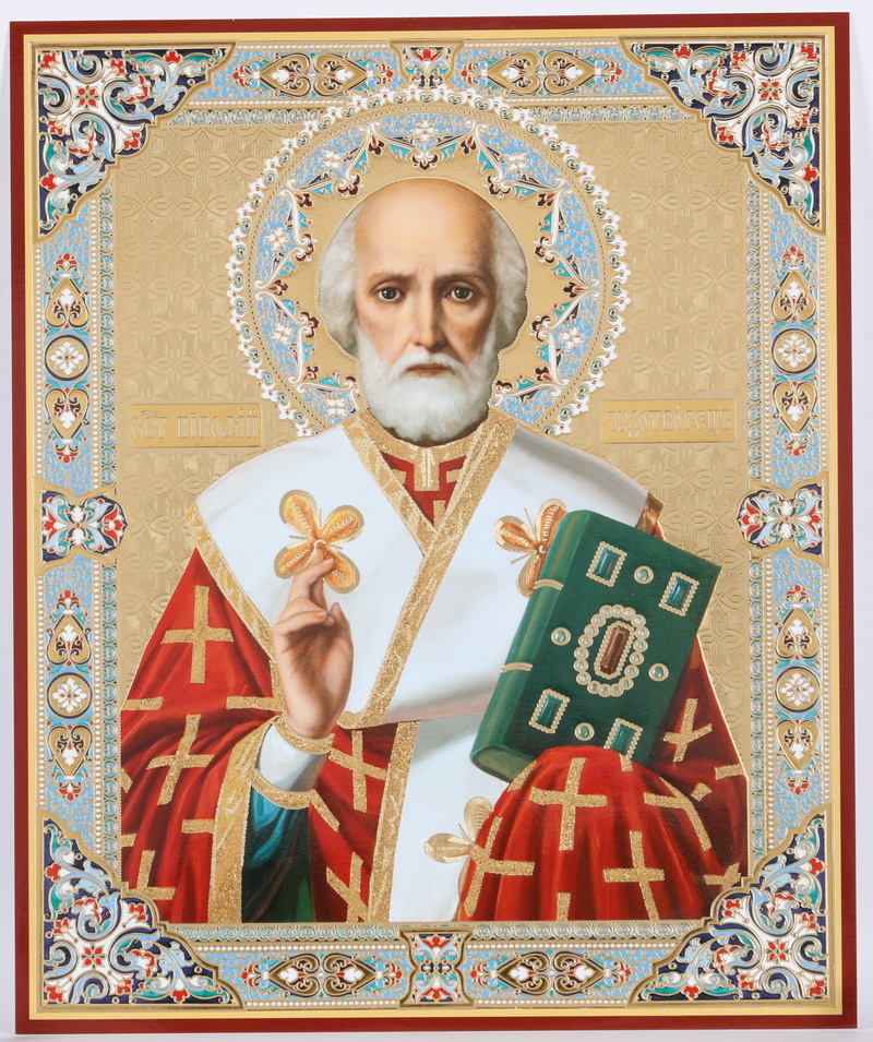 Икона на оргалите №1 18х24 двойное тиснение Николай Чудотворец 17