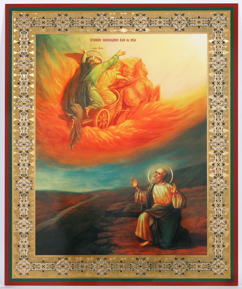 Икона на оргалите №1 18х24 двойное тиснение Огненное восхождение Илии Пророка