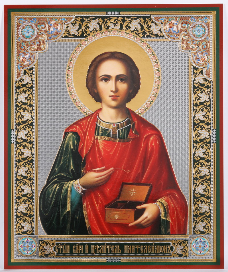 Икона на оргалите №1 18х24 двойное тиснение Пантелеимон