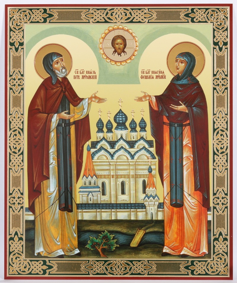 Икона на оргалите №1 18х24 двойное тиснение Петр и Феврония 2