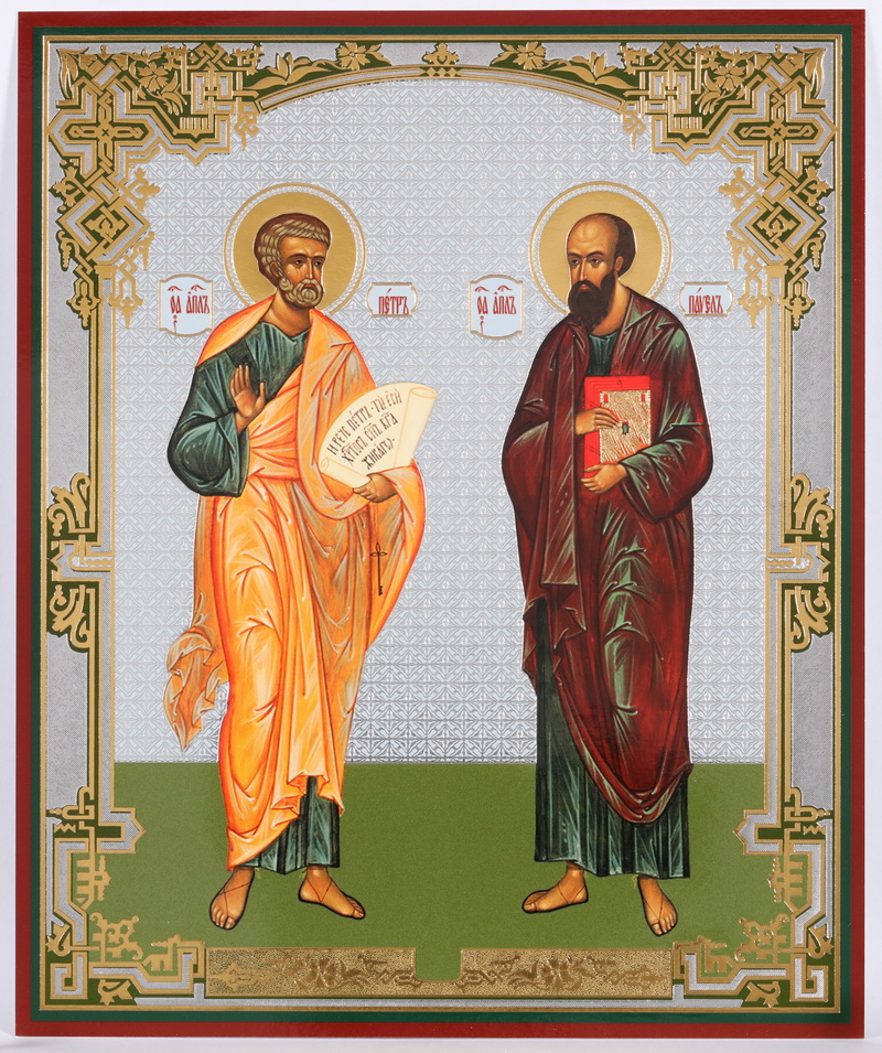Икона на оргалите №1 18х24 двойное тиснение Петр Павел