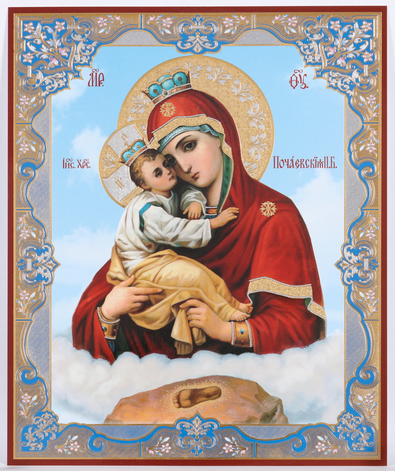 Икона на оргалите №1 18х24 двойное тиснение Почаевская БМ 2