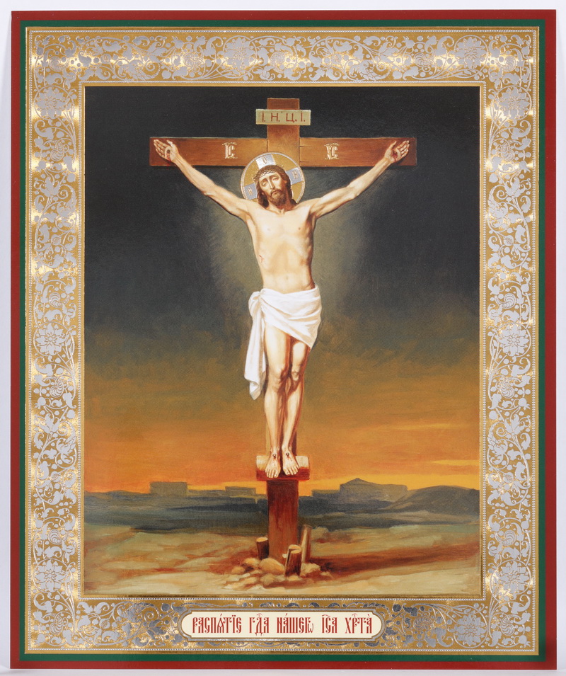 Икона на оргалите №1 18х24 двойное тиснение Распятие