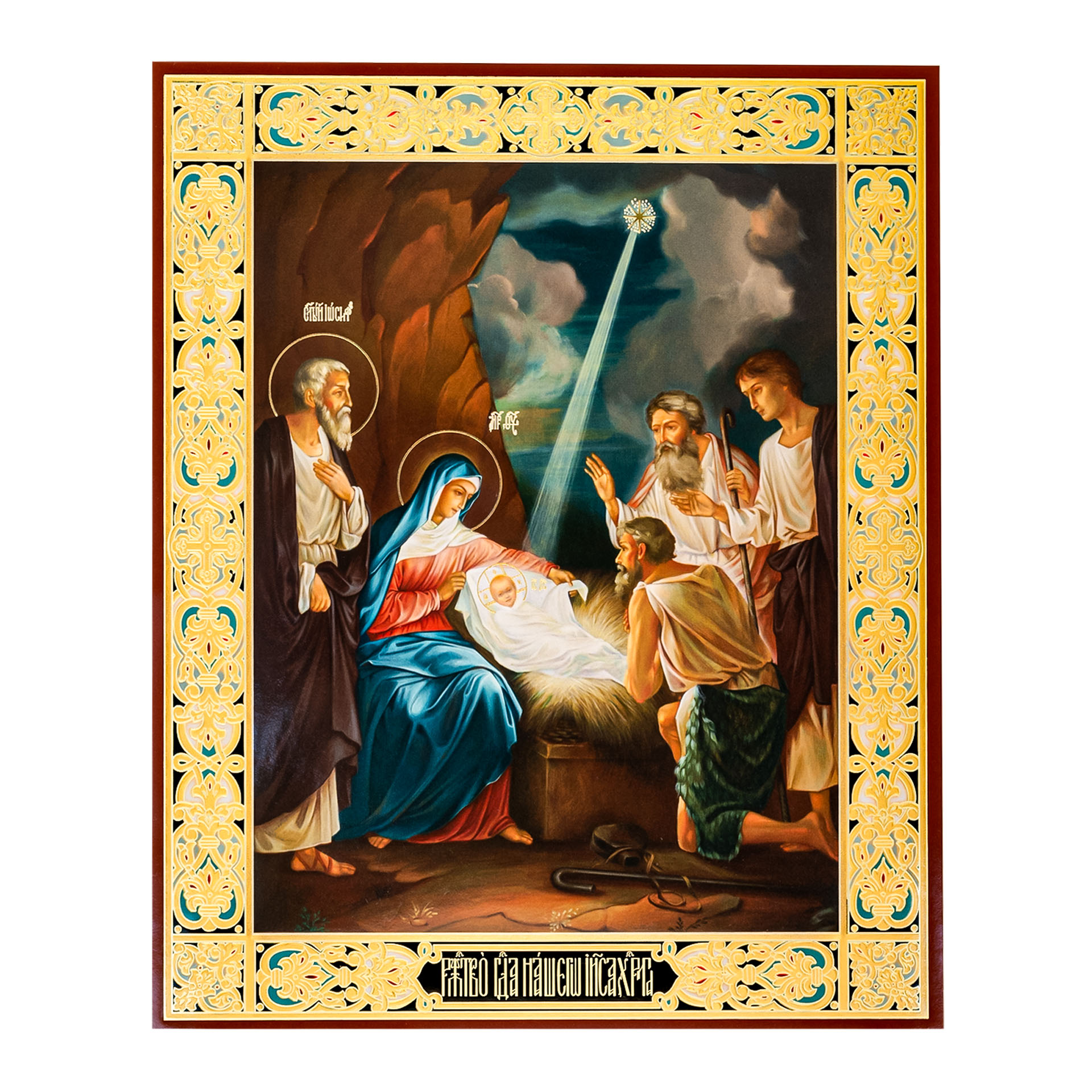 Икона на оргалите №1 18х24 двойное тиснение Рождество Христово 64