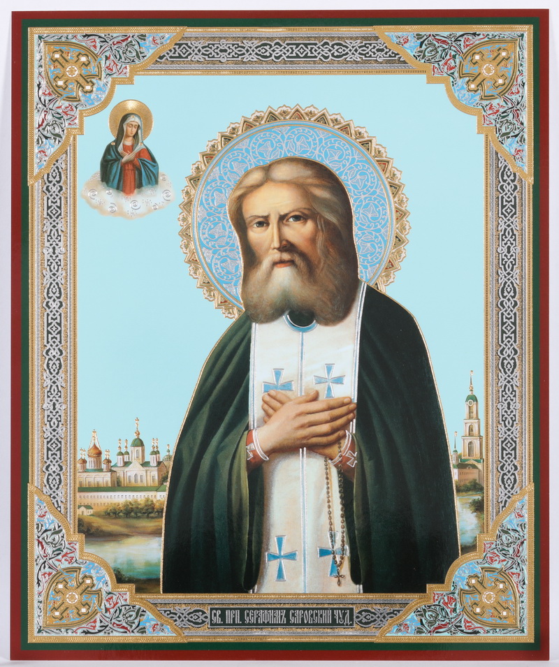 Икона на оргалите №1 18х24 двойное тиснение Серафим Саровский 2