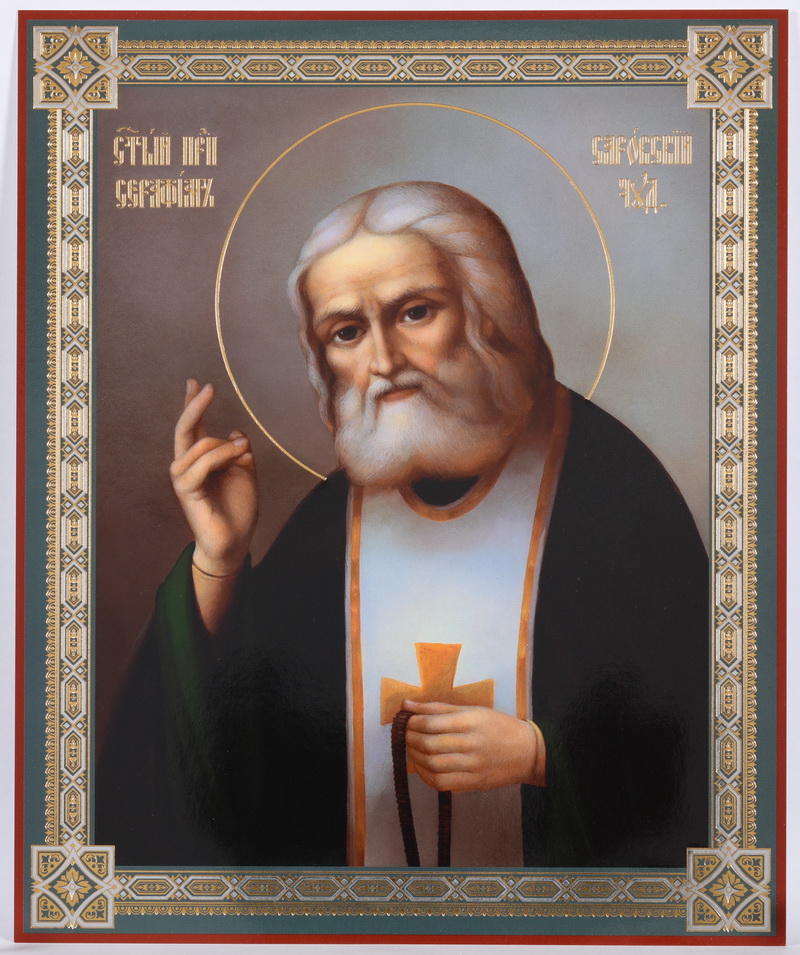 Икона на оргалите №1 18х24 двойное тиснение Серафим Саровский 7
