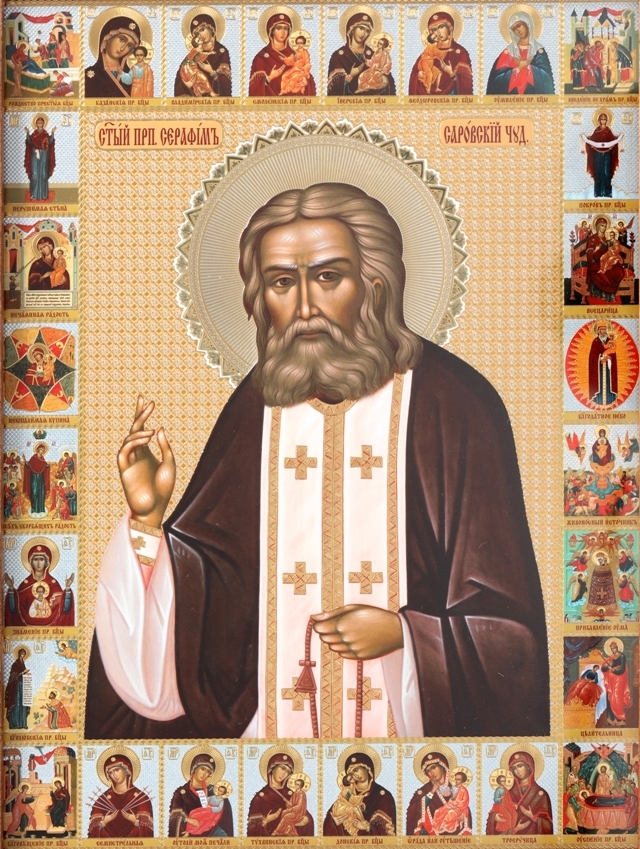 Икона на оргалите №1 18х24 двойное тиснение Серафим Саровский с БМ