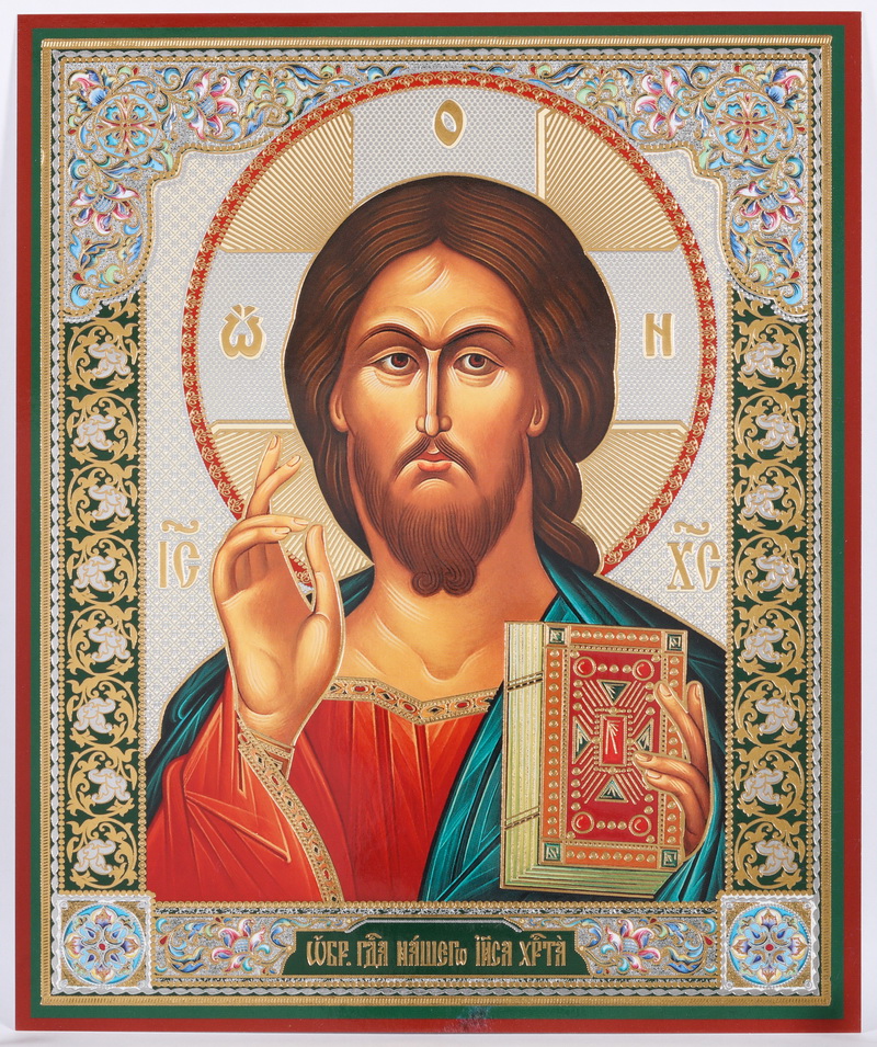 Икона на оргалите №1 18х24 двойное тиснение Спаситель 10