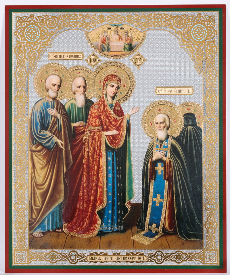 Икона на оргалите №1 18х24 двойное тиснение Явление Богородицы Сергию Радонежскому