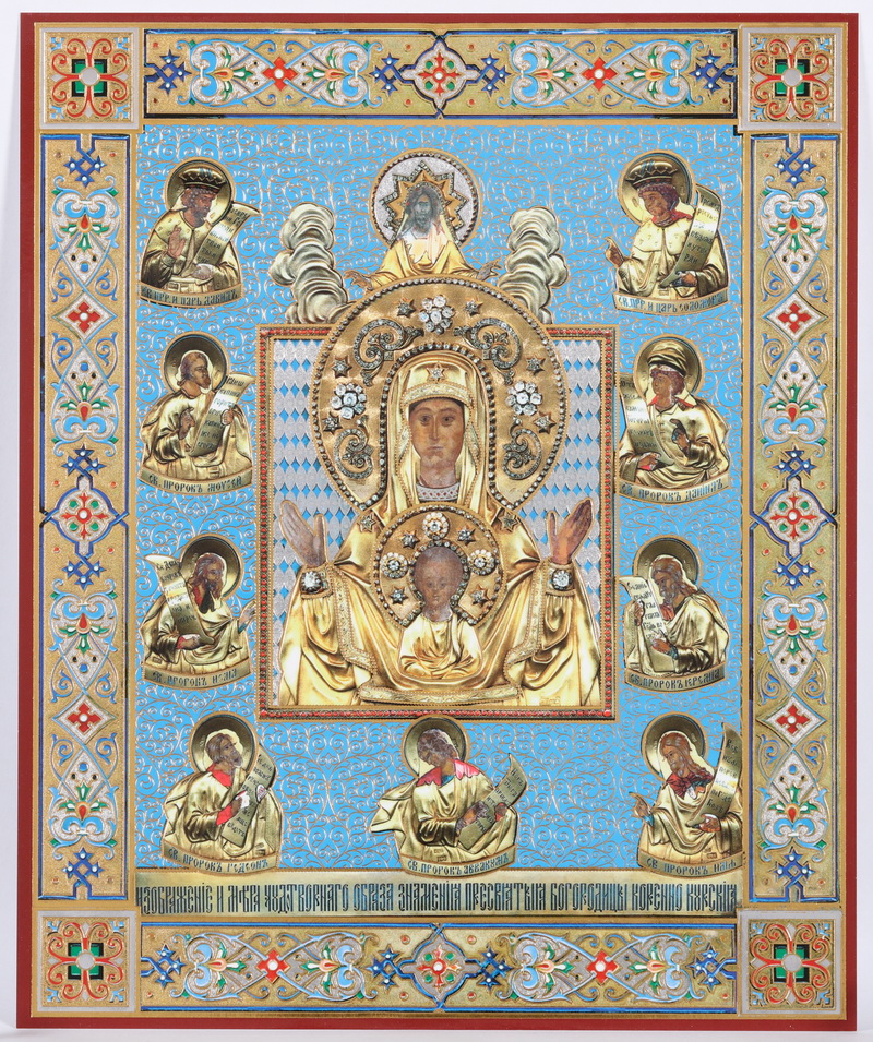 Икона на оргалите №1 18х24 двойное тиснение Знамение Курско-Корен. иконы на гол.фоне