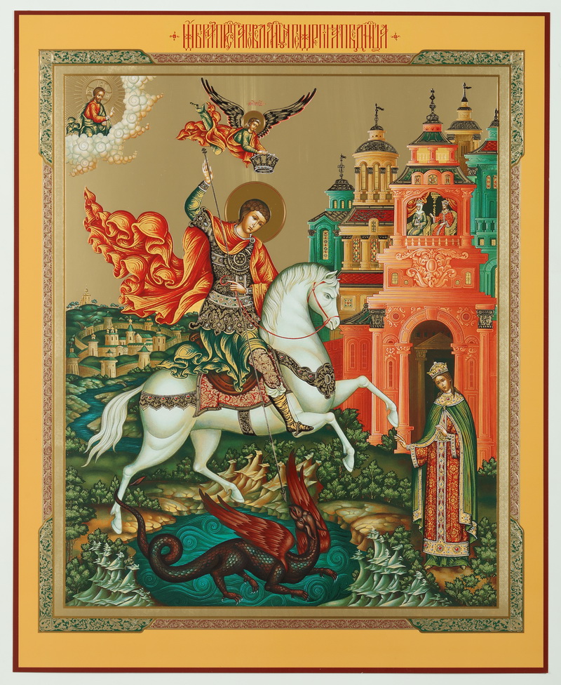 Икона на оргалите №1 30х40 двойное тиснение Чудо Георгия о змие 01