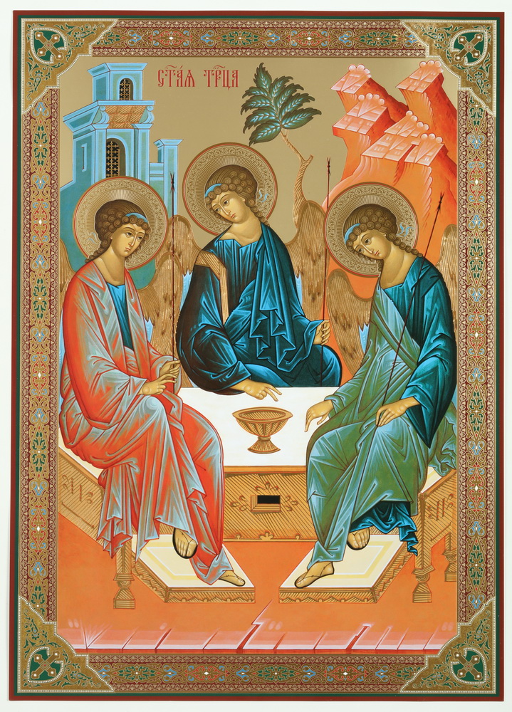 Икона на оргалите №1 30х40 двойное тиснение Троица (Рублевская) 4