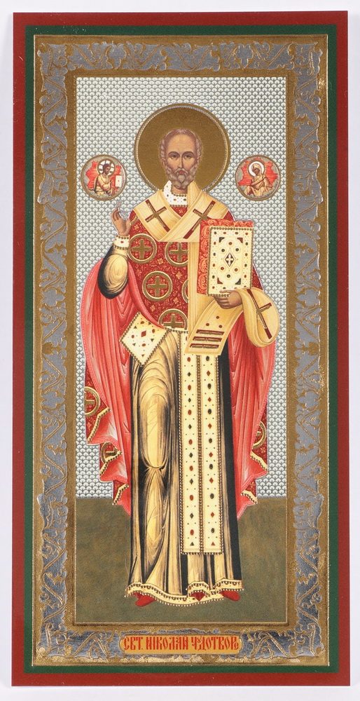 Икона на оргалите №1 7х14 двойное тиснение Николай Чудотворец (ростовой)