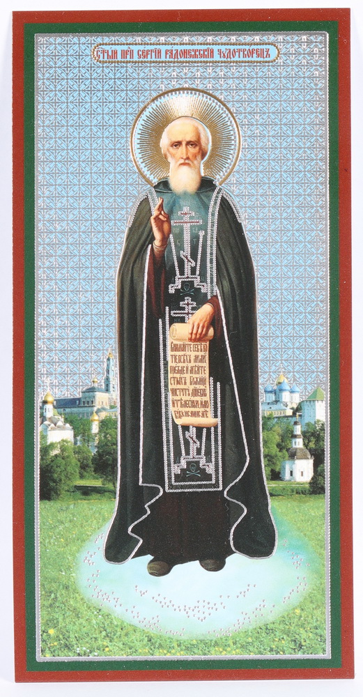 Икона на оргалите №1 7х14 двойное тиснение Сергий Радонежский 5