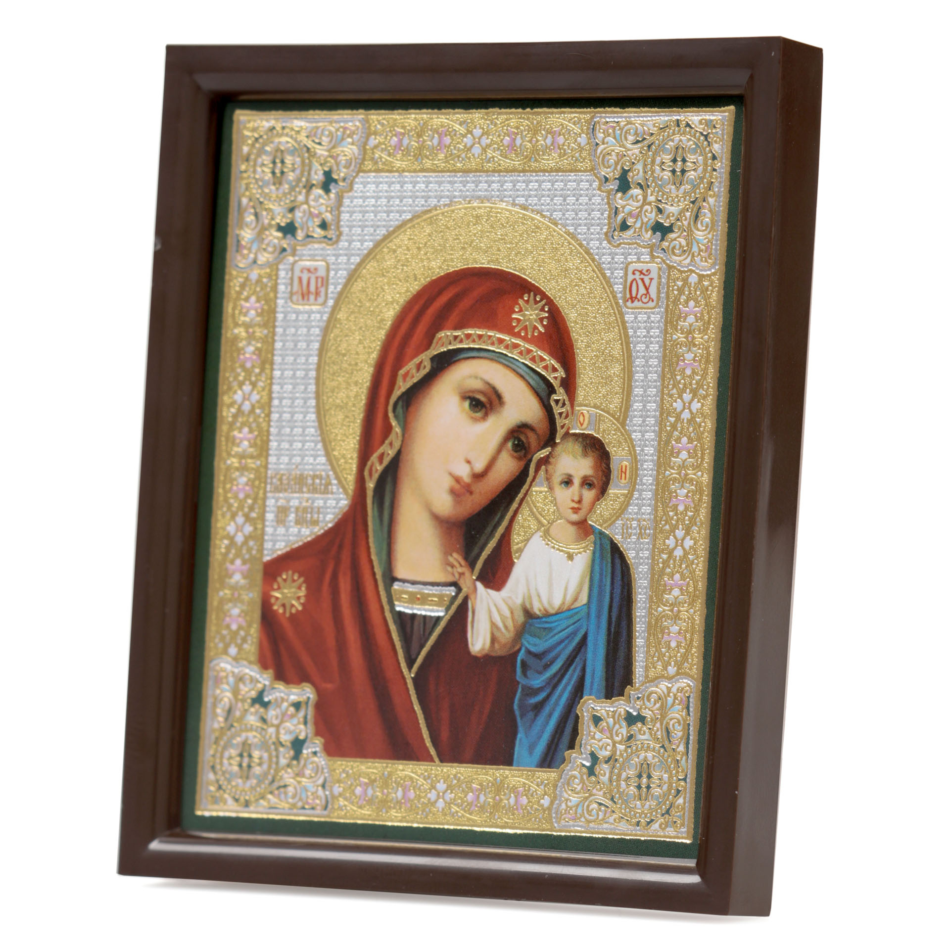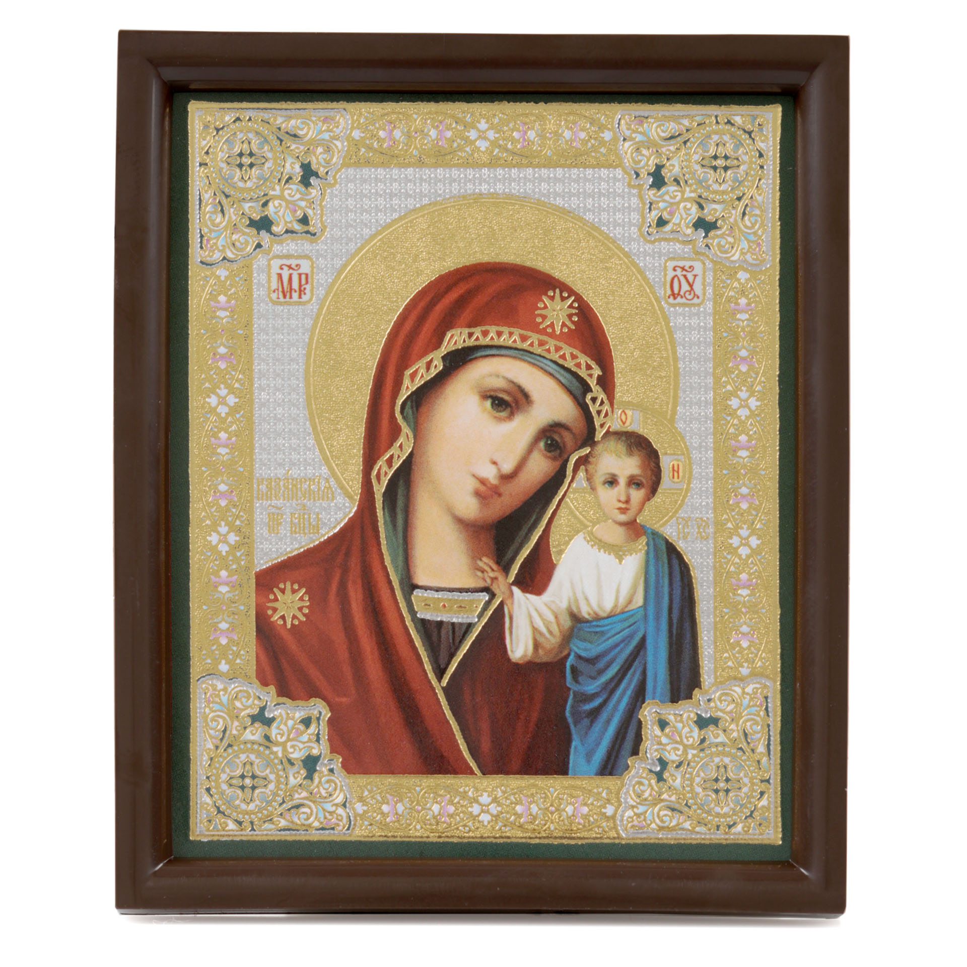 Икона на оргалите 6х9 двойное тиснение, рамка пластмассовая, упаковка