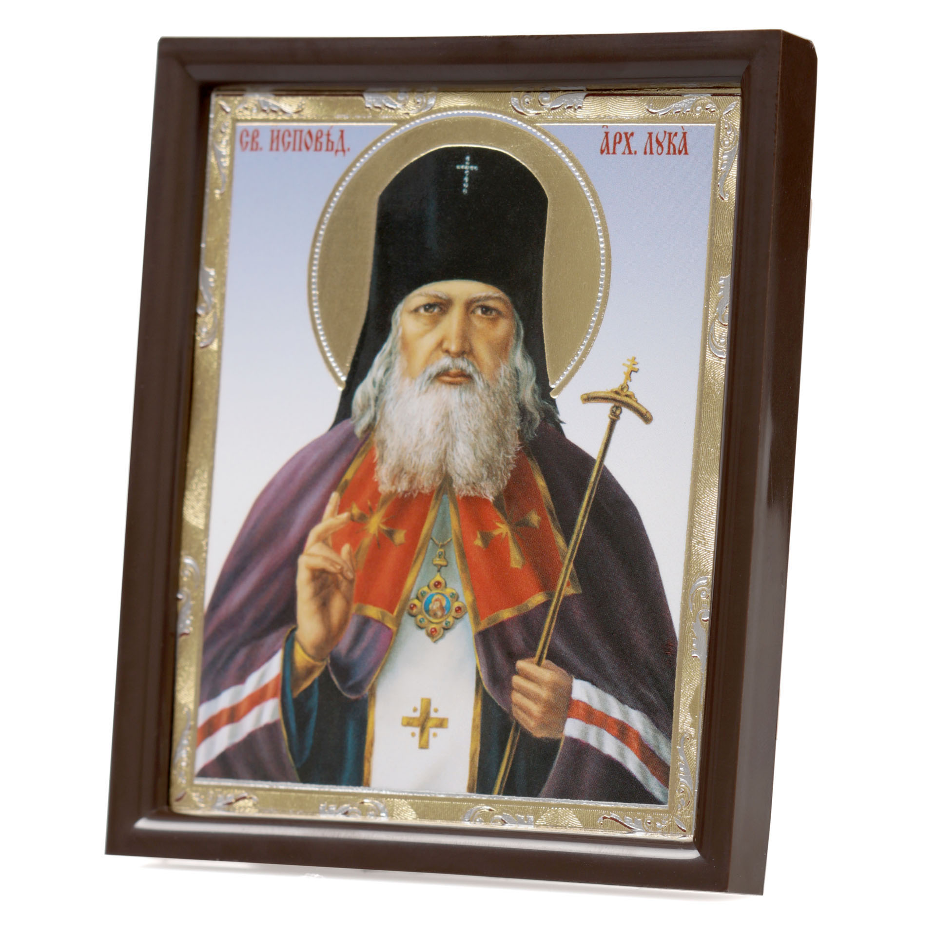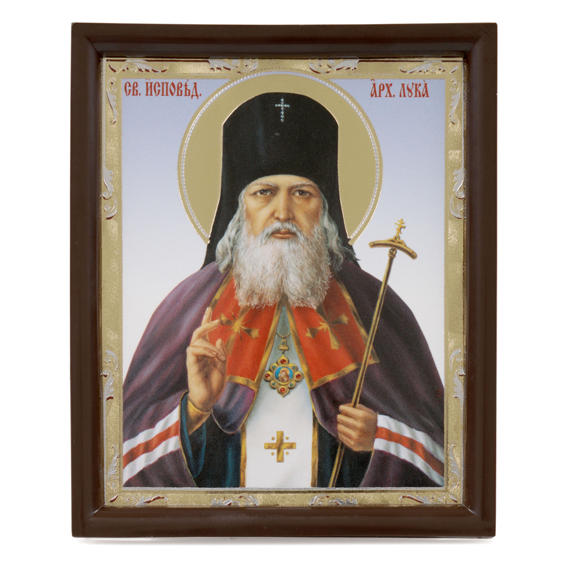 Икона на оргалите 6х9 двойное тиснение, рамка пластмассовая, упаковка Лука Крымский 2