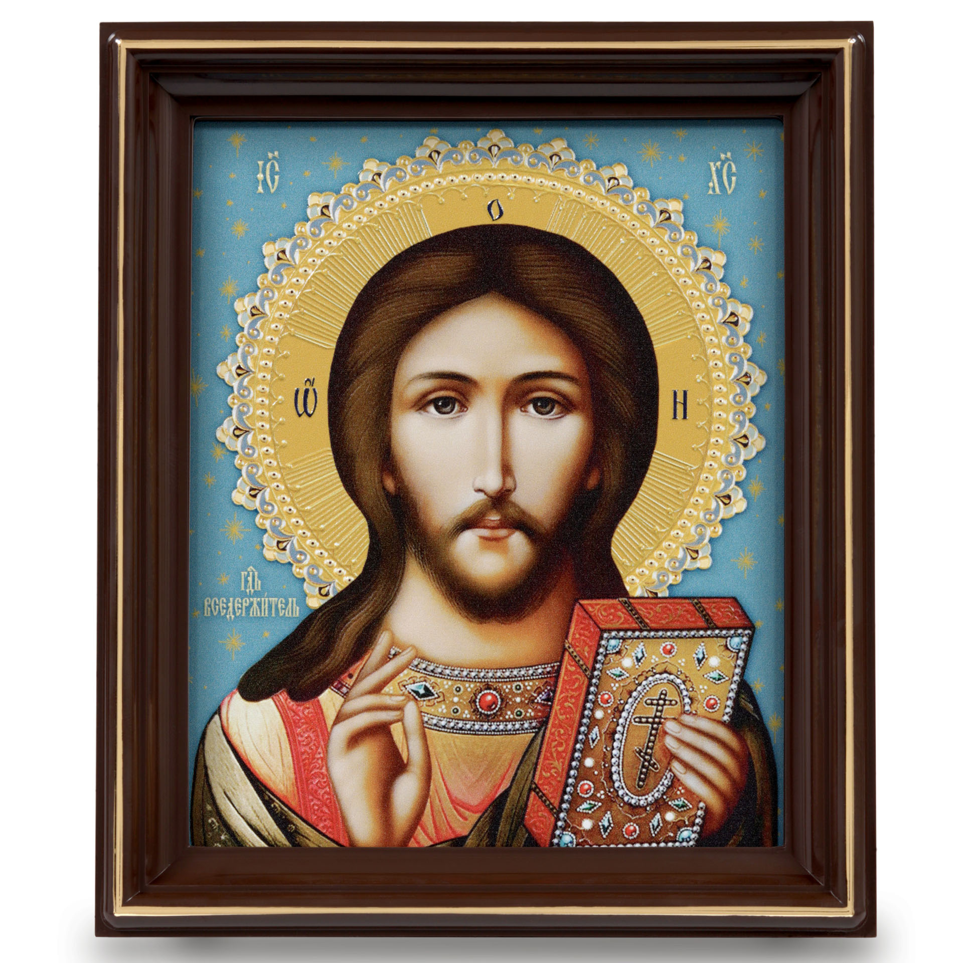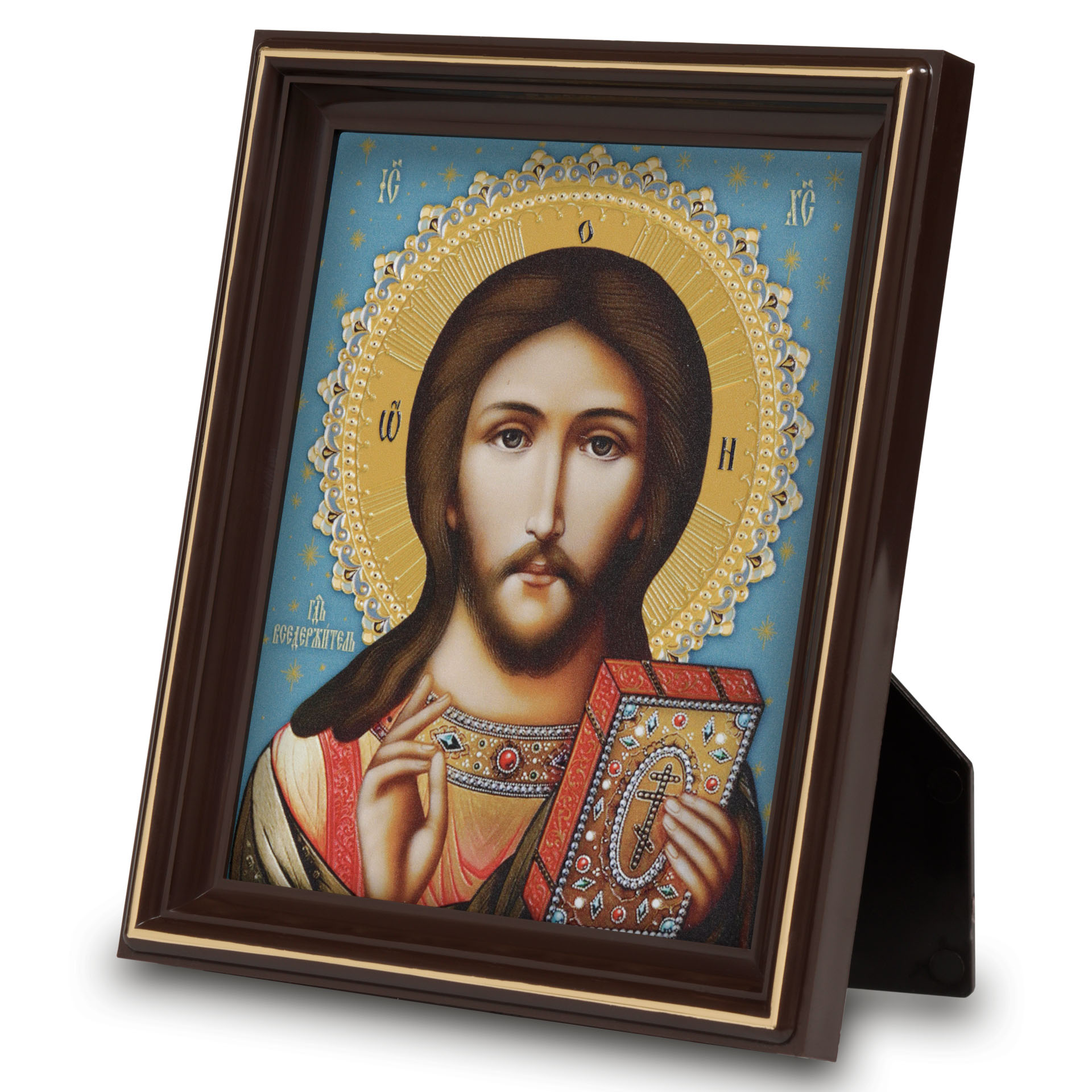 Икона на пластике 13х16 объёмная печать, лак, в пластмассовой рамке на подставке Спаситель 1