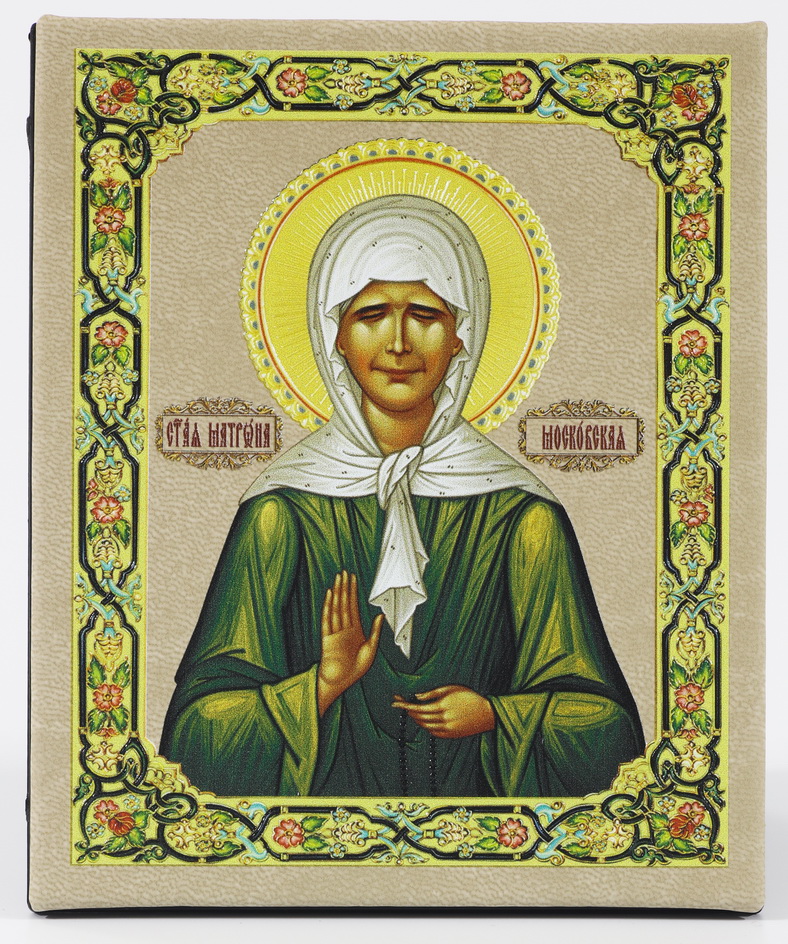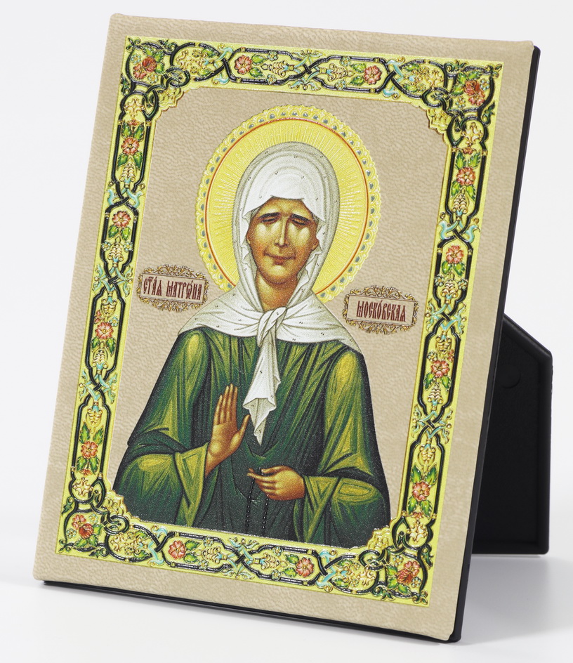 Икона настольная 10х12 на подставке, объемная печать Матрона Московская (с венчиком)