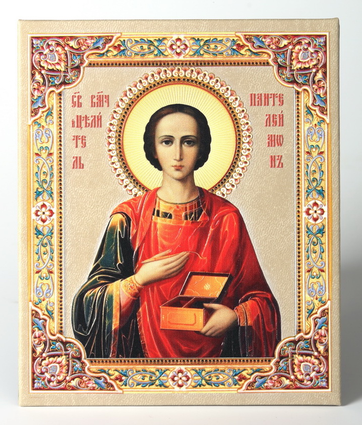 Икона настольная 10х12 на подставке, объемная печать Пантелеимон