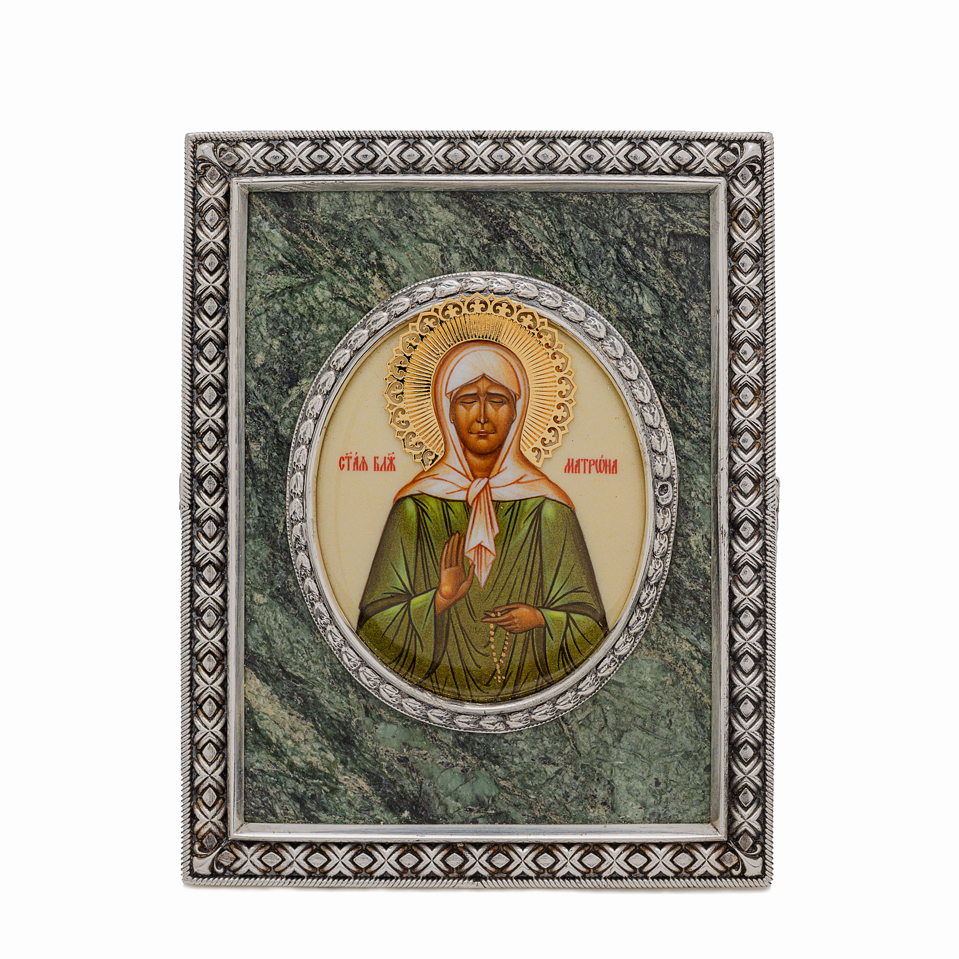Икона настольная №117 деколь, камень / золочение, серебрение / Матрона