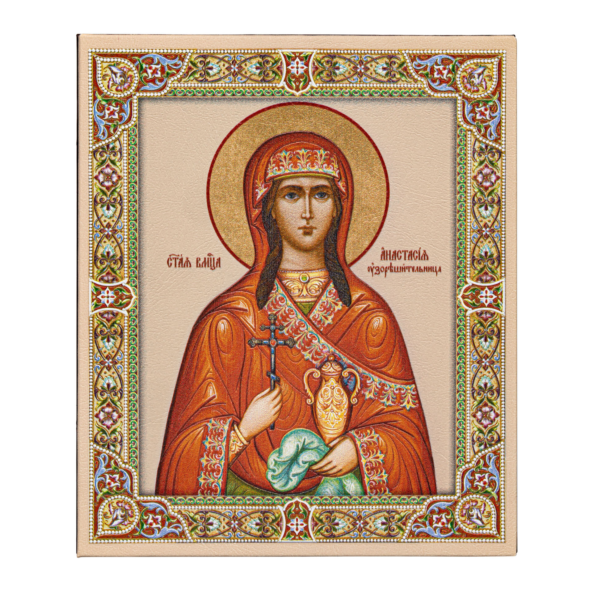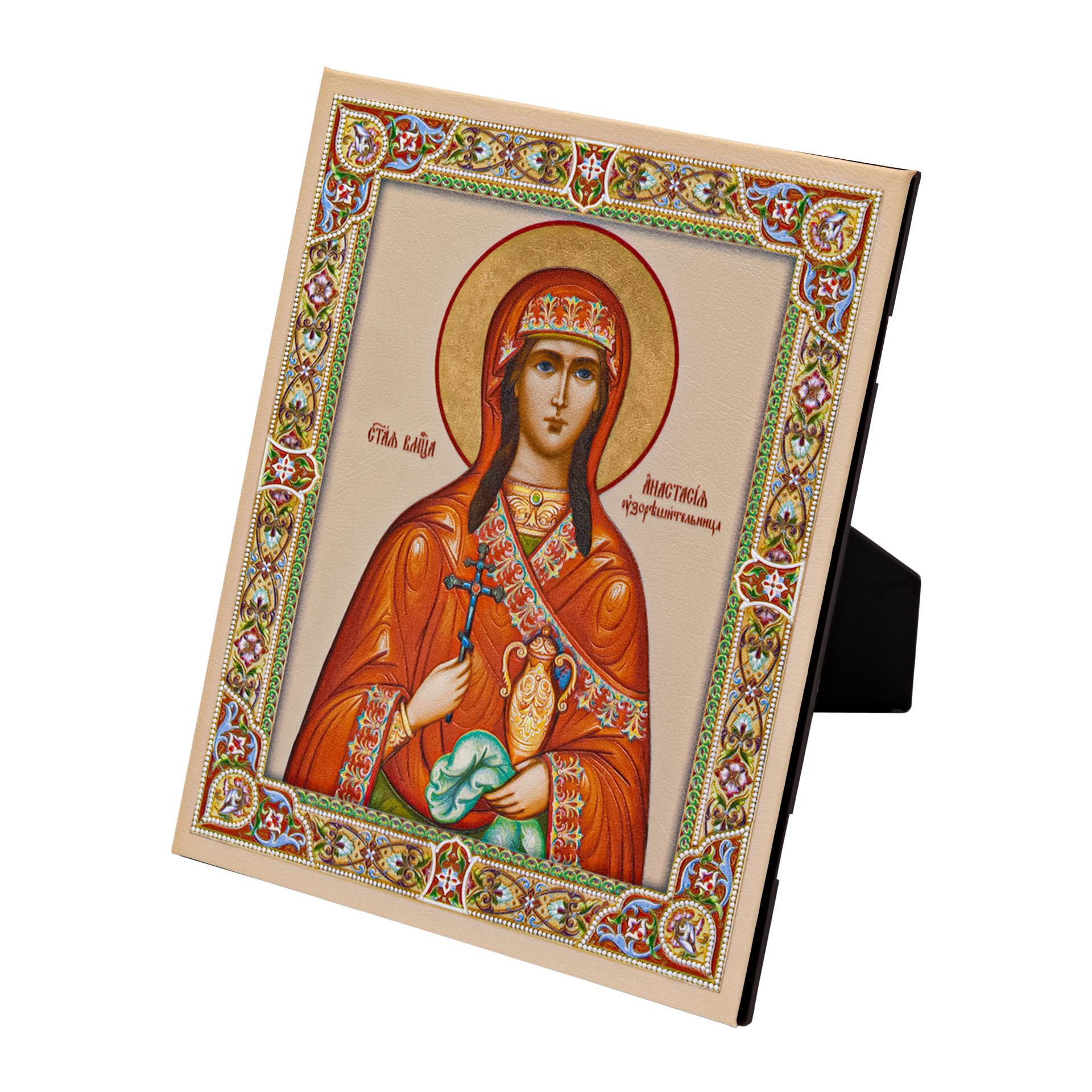 Иконы настольные на подставке изготовлены с использованием техники объёмной печати на коже. Для производства икон применяются только высококачественные материалы, яркие, насыщенные краски. Используется современное оборудование – УФ плоттер Mimaki. По Вашему заказу мы можем напечатать любой лик.