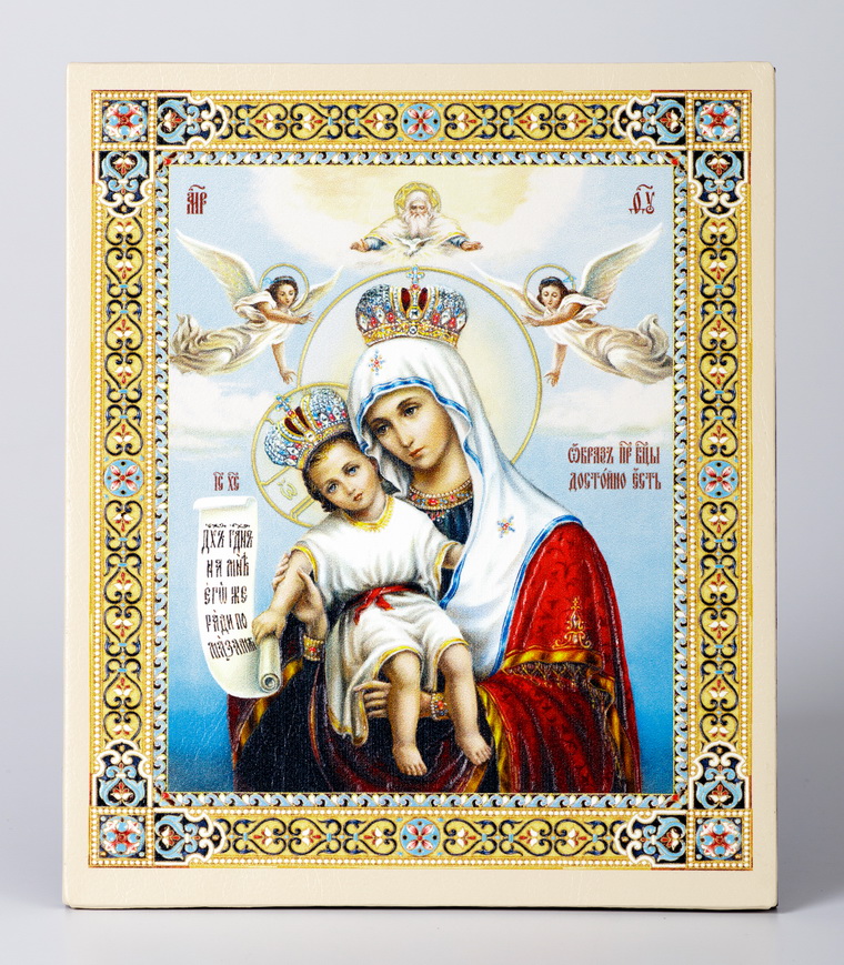 Иконы настольные на подставке изготовлены с использованием техники объёмной печати на коже. Для производства икон применяются только высококачественные материалы, яркие, насыщенные краски. Используется современное оборудование – УФ плоттер Mimaki. По Вашему заказу мы можем напечатать любой лик.