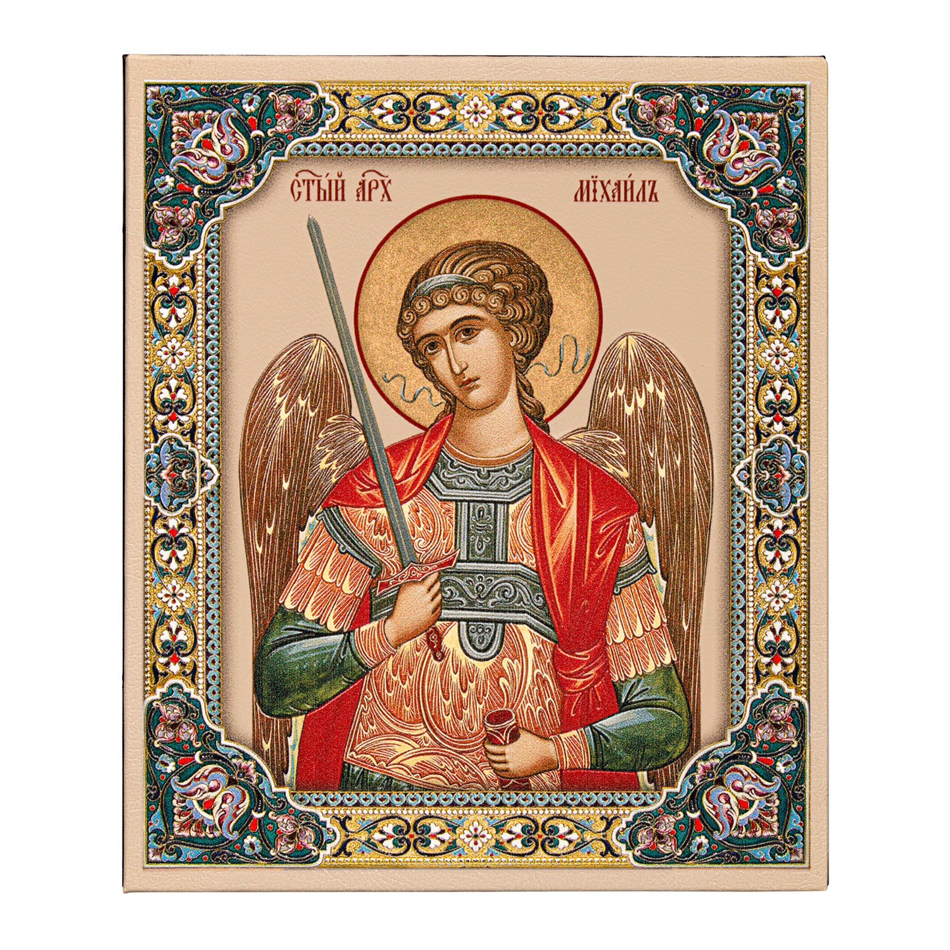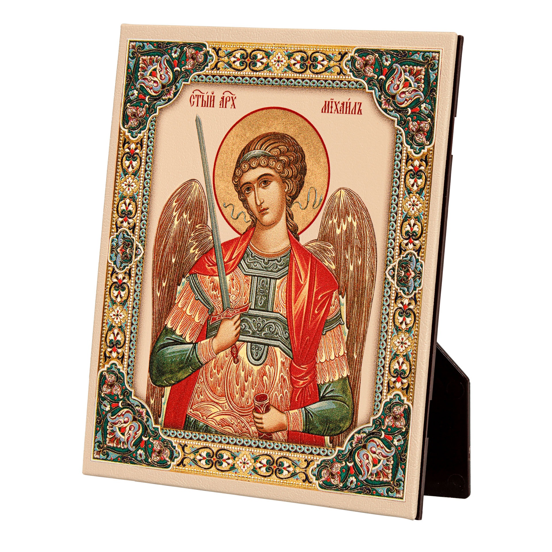 Икона настольная 11х13 на подставке, объемная печать Михаил Архангел