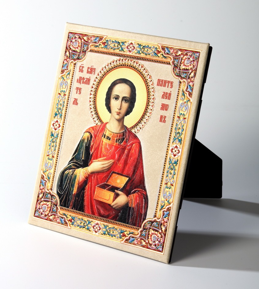 Иконы настольные на подставке изготовлены с использованием техники объёмной печати на коже. Для производства икон применяются только высококачественные материалы, яркие, насыщенные краски. Используется современное оборудование – УФ плоттер Mimaki. По Вашему заказу мы можем напечатать любой лик.