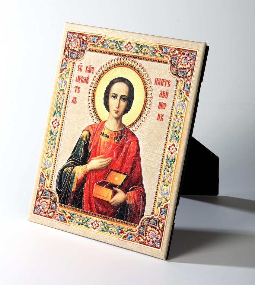 Икона настольная 11х13 на подставке, объемная печать Пантелеимон