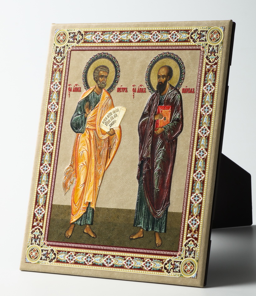 Икона настольная 11х13 на подставке, объемная печать Петр Павел